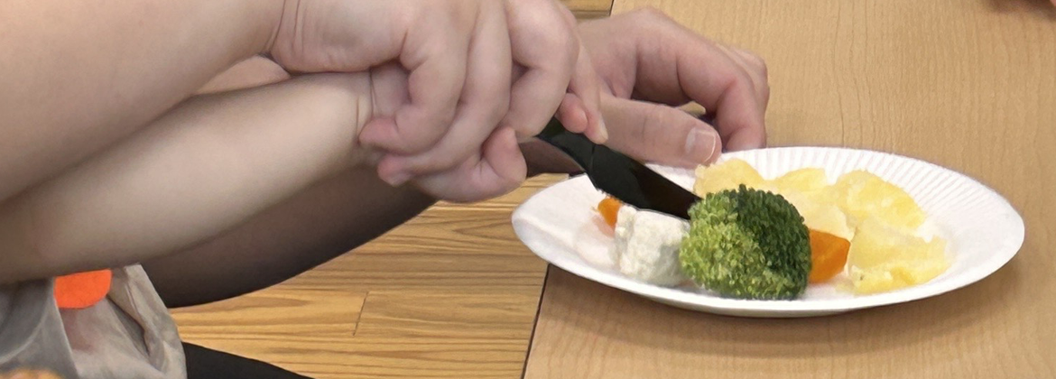 ①子ども:食欲、食べられる量、気分など、子どものその日の状況に合わせたメニューを選ぶことができ、可能な限り食材や味付けを年齢に合わせたもので調理する。管理栄養士資格及び乳幼児保健指導の経験を生かし、栄養バランスがとれその子の嗜好に寄り添ったセミオーダーのキッズランチで「食べる」ことを楽しんでもらう。