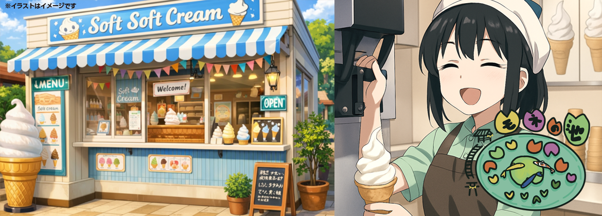 A棟:モネの池ソフトクリーム店 「萌音(もね)ちゃん」