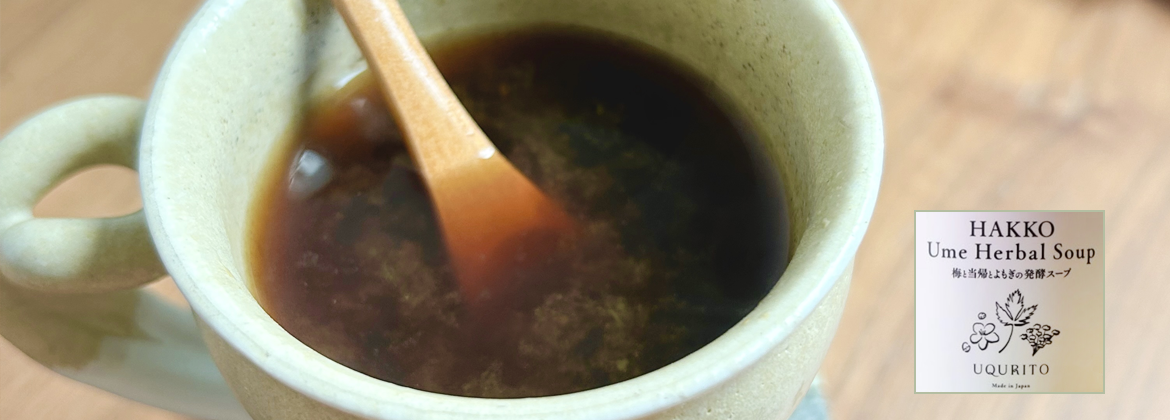 現在販売している「梅と当帰とよもぎの発酵スープ」は温活、腸活、免疫力といった日々の健康を維持するために必要な食材を集めてペースト状にした発酵スープです。